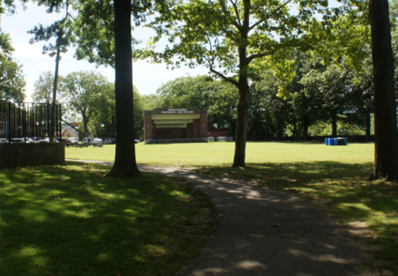 Phase I of Library Park consists of replacing all above-ground electrical utilities and installing upgraded electric utilities underground, installing a sophisticated irrigation system, replacing the current grass with fiber reinforced sod, adding new sidewalks, new walkways, installing new lighting poles and benches, adding extensive plantings – including trees, and constructing new entry ways off of Grand Street.