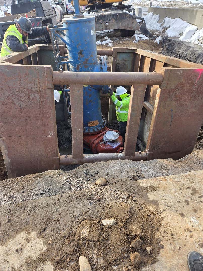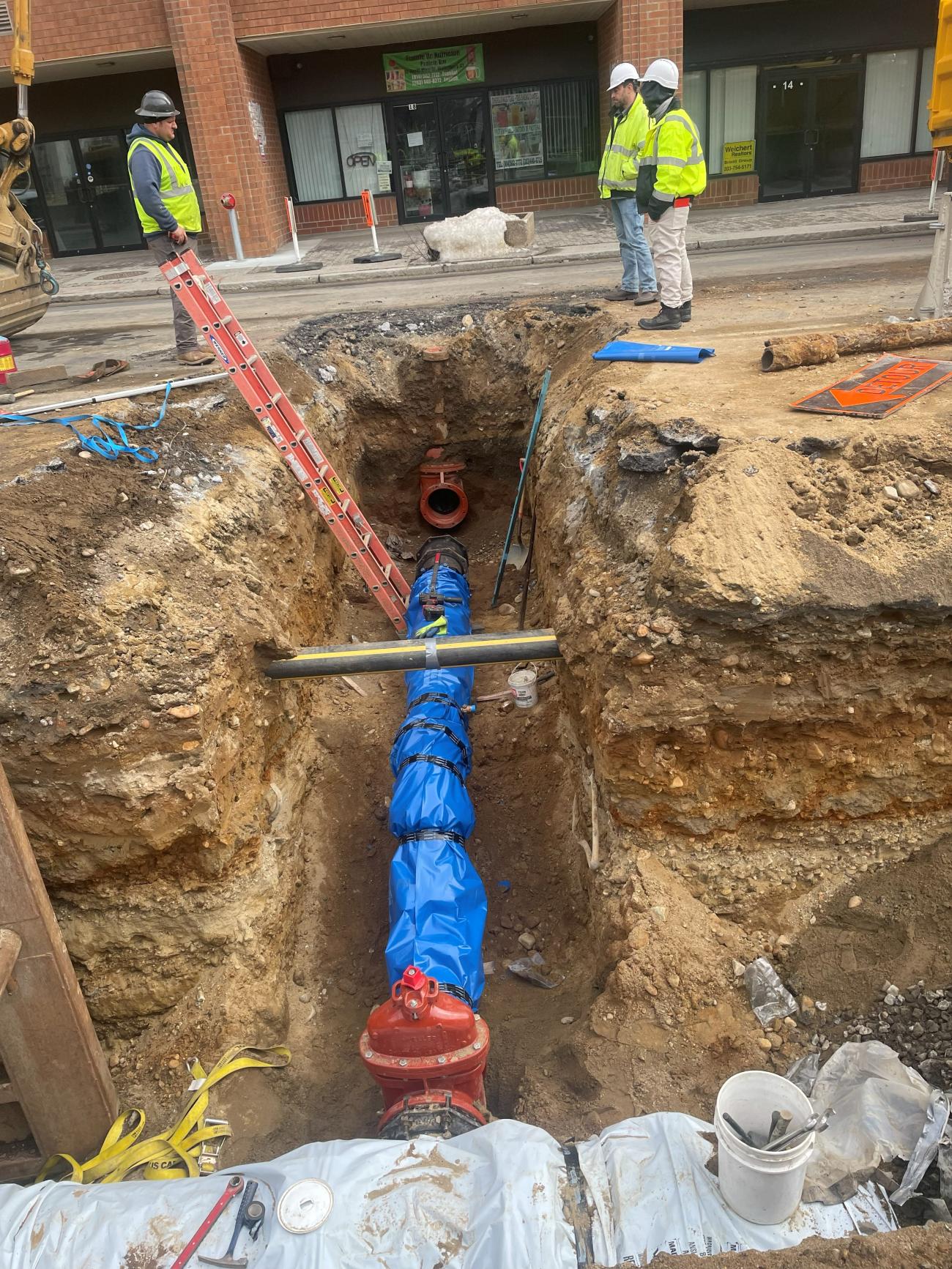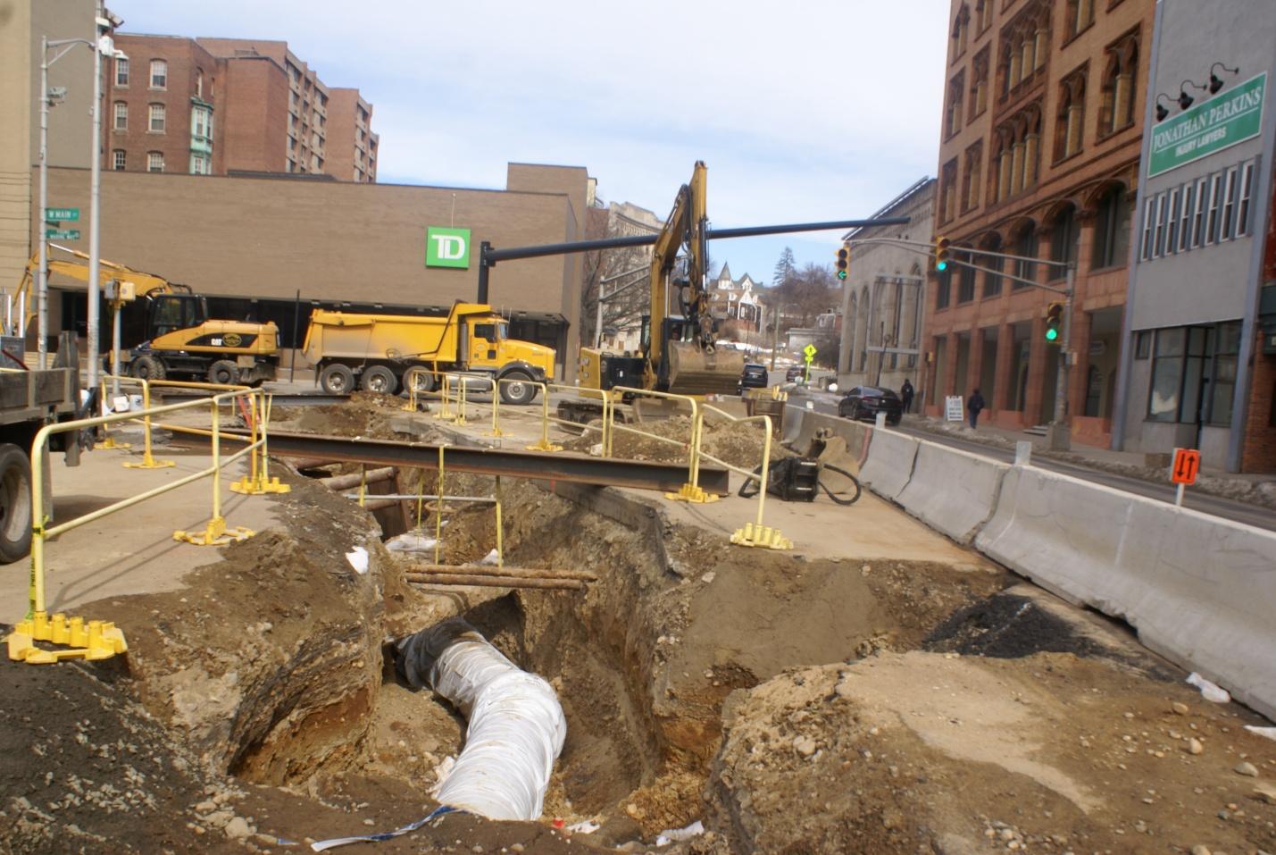 This project will replace a 30-inch water main and install a new 12-inch water main at the intersection of North Main Street and West Main Street.