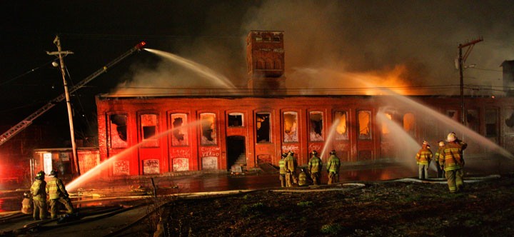 • Fire-damaged industrial buildings removed