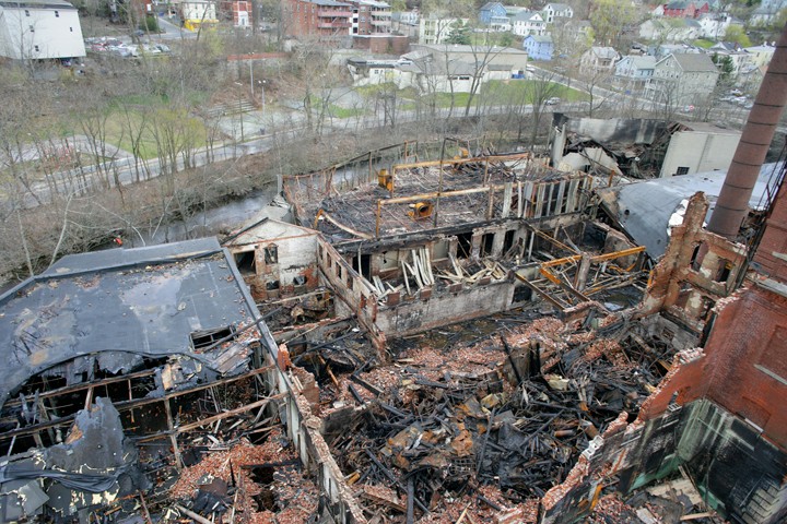 The former Nova Dye factory at 313 Mill Street was severely damaged by a fire in 2012. The City demolished the unsafe buildings and completed initial environmental cleanup to address safety concerns and prepare the site for future reuse.