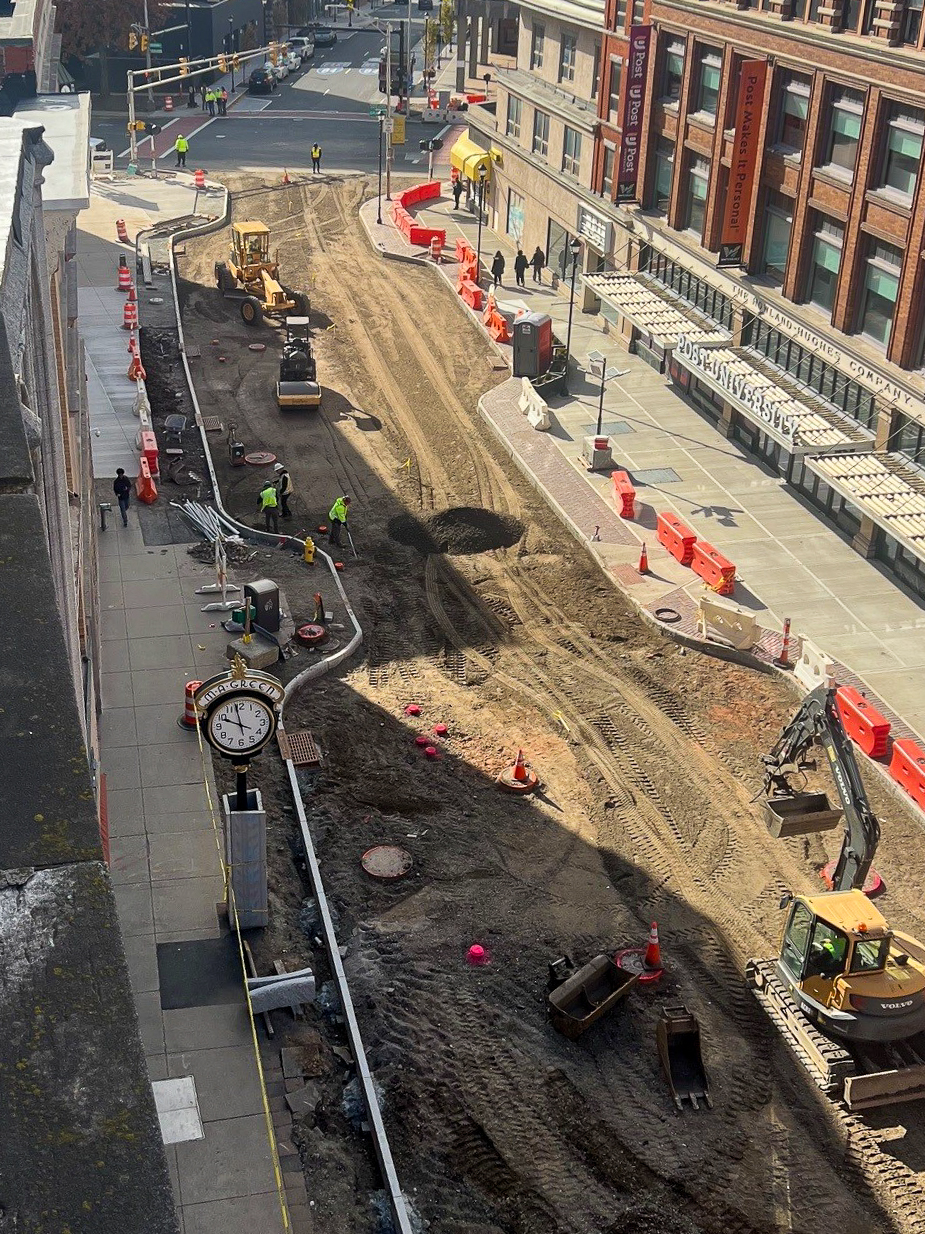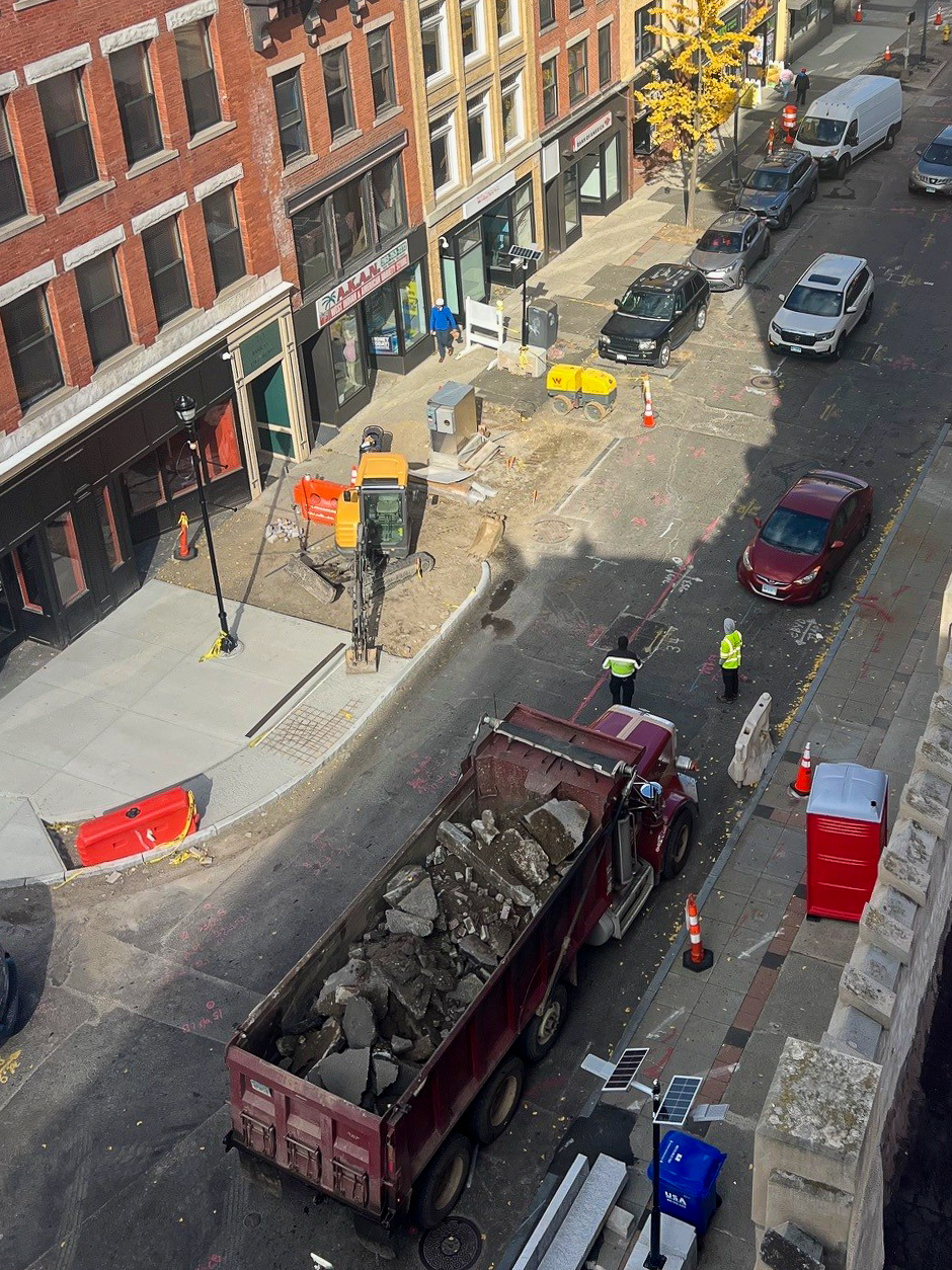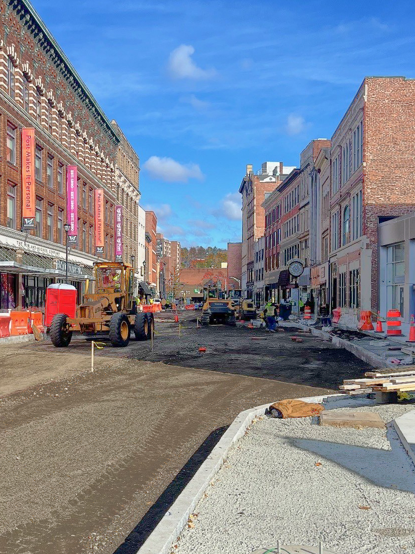 - This phase of the project will involve removing the bricks, paving, widening, and installing new sidewalks, benches, trash and recycling receptacles, new lights, new traffic signals at Phoenix Avenue and Brook Street, and rectangular rapid flashing beacons.
